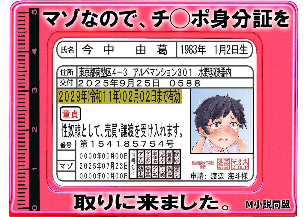 【マゾなので、チ◯ポ身分証を取りに来ました。】【M小説同盟】